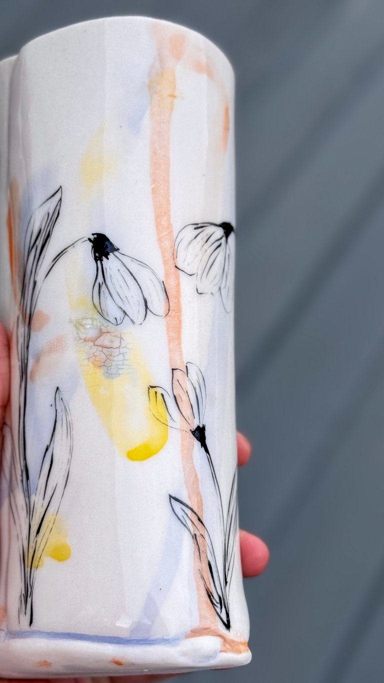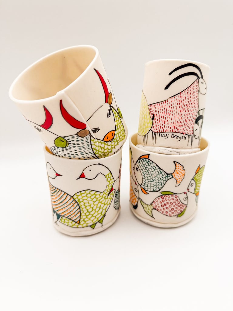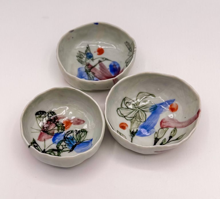 A Collection of Porcelain with fine line drawings layered over soft watercolor washes—where color and form meet in quiet balance.